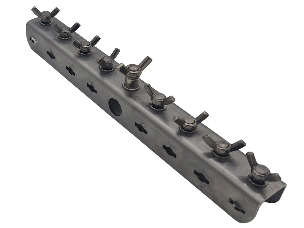 Rameno je vyrobeno z odolné nerezové oceli, vhodné pro vysoké teploty, snadno se čistí a má dlouhou životnost. Pomocné jehlice se zajišťují křídlovými šrouby, takže montáž je rychlá a bez potřeby nářadí.
